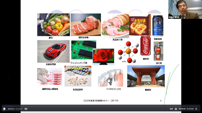 2021年度第2回セミナー開催報告 2021年2月17日、2020年度第2回機構セミナーをWeb会議方式で 開催しました。当機構の用山事務局長が「下水汚泥焼却灰からのリン酸製造技術の動向とチャレンジ 」というタイトルで講演されました。セミナー参加者数は63名でした。